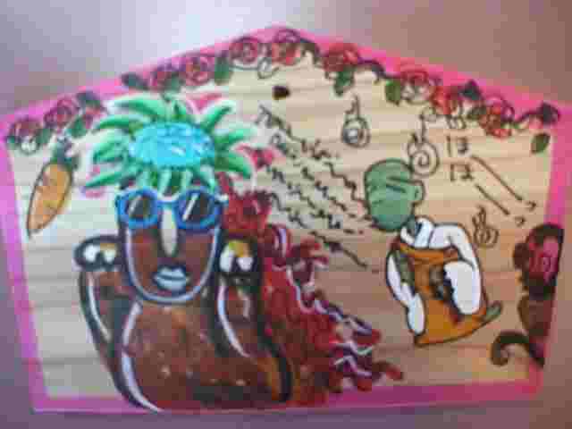 大変お見苦しい物を見せてしまいました。でもね、でもね、「馬」「招き猫」「河童」を足して3で割った!なんて事はものすごく大変なことなんですよ〜。ん〜ちょっと猫の影が薄いかな。。